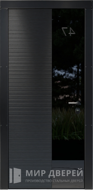 Металлическая дверь от дизайнера с гладкой и фрезерованной поверхностью №27 сочетает в себе элегантный дизайн и высокую надежность, создавая неповторимую атмосферу вашего дома. Внешняя и внутренняя отделка выполнена из плиты МДФ, что придает двери современный и стильный вид. Черные и темные оттенки подчеркивают утонченность, делая дверь изысканным элементом интерьера. Конструкция двери включает профильные трубы 50х25 мм для каркаса и полотна, что обеспечивает прочность и долговечность. Лист металла толщиной 2 мм и ребра жесткости из профильных труб 40х25 мм гарантируют надежную защиту от взлома и повышенную стойкость к механическим повреждениям.