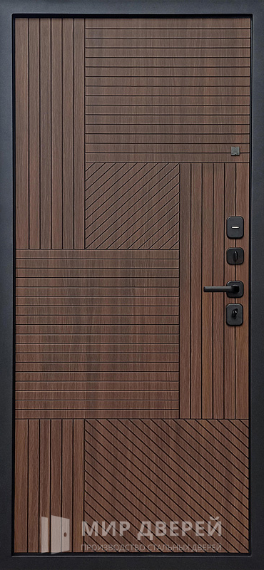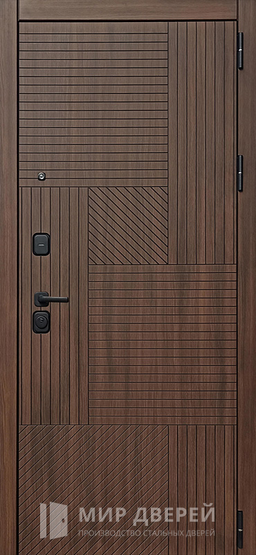Квартирная металлическая дверь №4 сочетает надежность стальной конструкции с эстетикой современного дизайна. Каркас и полотно выполнены из профильной трубы 50х25 мм, дополнительно усиленной ребрами жесткости 40х25 мм, что обеспечивает устойчивость к нагрузкам и долговечность. В качестве защитного слоя используется лист металла толщиной 2 мм, а резиновый уплотнитель с двумя контурами гарантирует плотное прилегание, снижая проникновение сквозняков и посторонних запахов. Внешняя и внутренняя отделка выполнена из панелей МДФ ПВХ в классическом коричневом оттенке, что делает дверь универсальной и подходящей к различным интерьерным решениям. При желании можно дополнить конструкцию шумо- и теплоизоляцией, выбрав плиты минваты или пенопласта, что повысит комфорт внутри помещения. Такая дверь отличается практичностью, надежностью и эстетикой, оставаясь доступным и функциональным решением для повседневного использования.